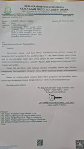 PILARBMR.COM, BOLSEL- Kejaksaan Tinggi Sulawesi Utara mengembalikan Surat Pemberitahuan Dimulainya Penyidikan (SPDP) atas nama tersangka Dedi Vengky Matahari.