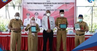 PILARBMR.COM,BOLSEL-Bupati H. Iskandar Kamaru SPt menghadiri Penyerahan secara Simbolis Surat Pemberitahuan Pajak Daerah Terhutang (SPPDT) dan Daftar Himpunan Ketetapan Pajak Daerah (DHKP) Tahun 2022 …